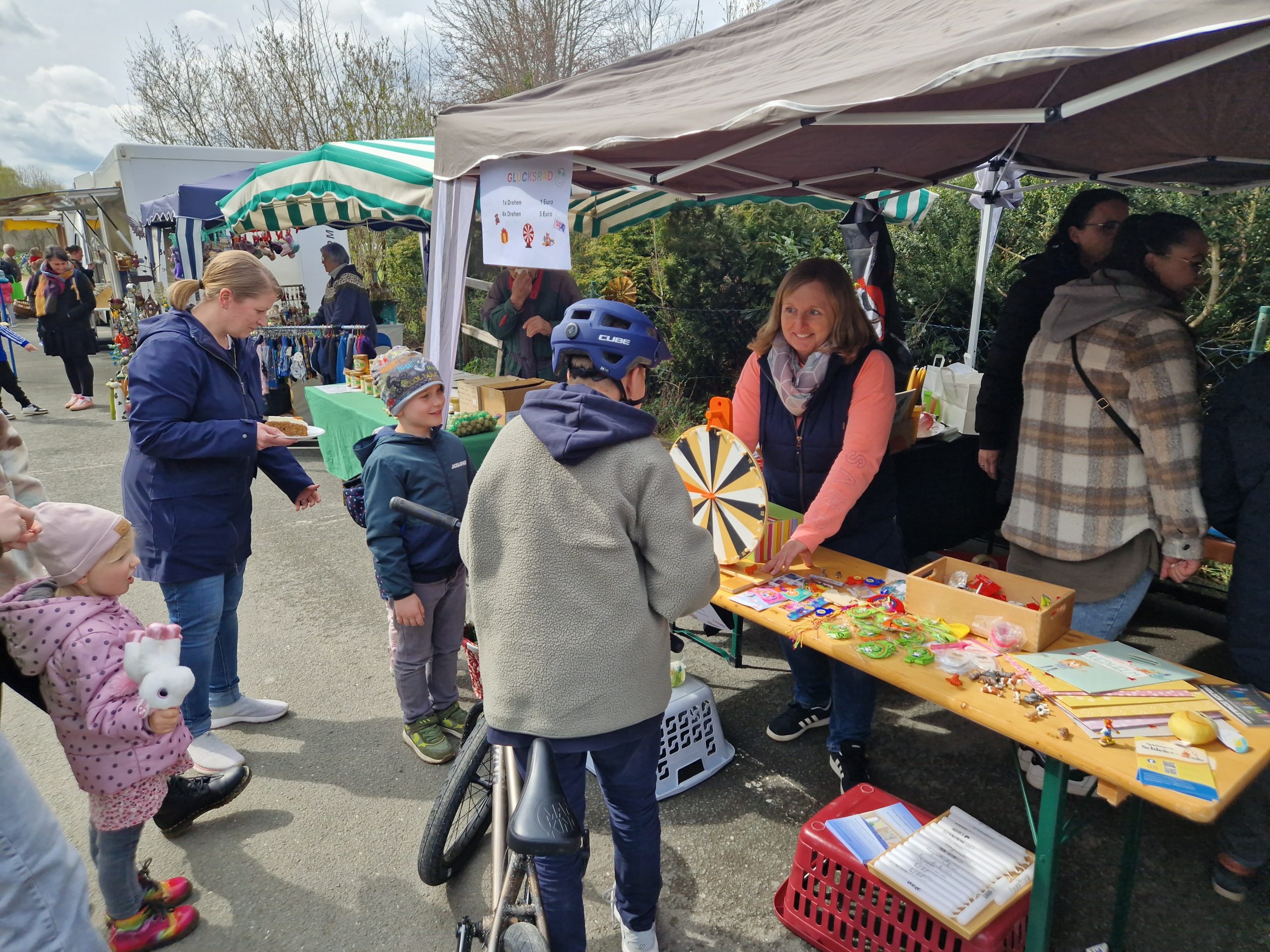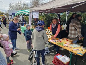 Insgesamt war es ein sehr gut besuchter Markt, u. a. auch, weil der Kindergarten mit einem Glücksrad mit vielen attraktiven Preisen vor Ort war und Spenden für die Ausstattung des neuen Turnraumes sammelte.