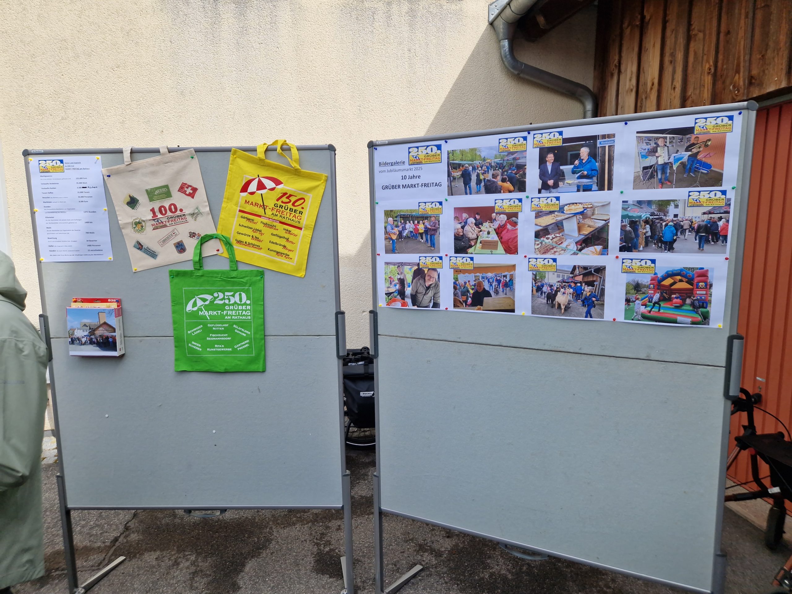 Zum Jubiläum gab es zwei Bildtafeln zu betrachten und die Händler spendierten ihren Kunden eine neu gestaltete Jubiläumseinkaufstasche, die durch ihre frische grüne Farbe sehr auffällig ist und sicher bei den zukünftigen Märkten vielfach zu sehen sein wird.