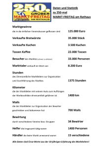 Hier noch ein paar Statistikdaten zu den bisher abgehaltenen 250 Märkten: